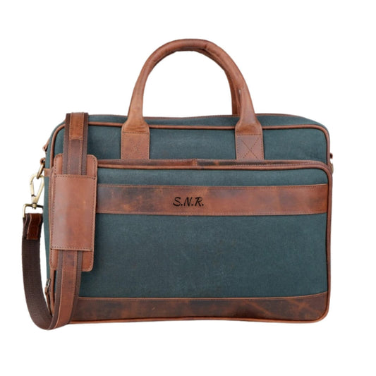 Premium Canvas Leather Briefcase, Canvas Laptop Shoulder Bag, Green Canvas Cross body Briefcase, Valentine's Day Gift For Him & Her