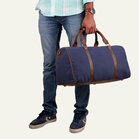 Premium Canvas Leather Duffel Bag, Canvas Travel Duffel Bag, Blue Canvas Duffel Bag, Valentine's Day Gift For Him & Her