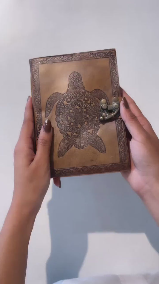 Turtle Design Vintage Embossed Leather Journal- Coptic Bound with Lock Closure 8Hx6W Inch (2 pcs)